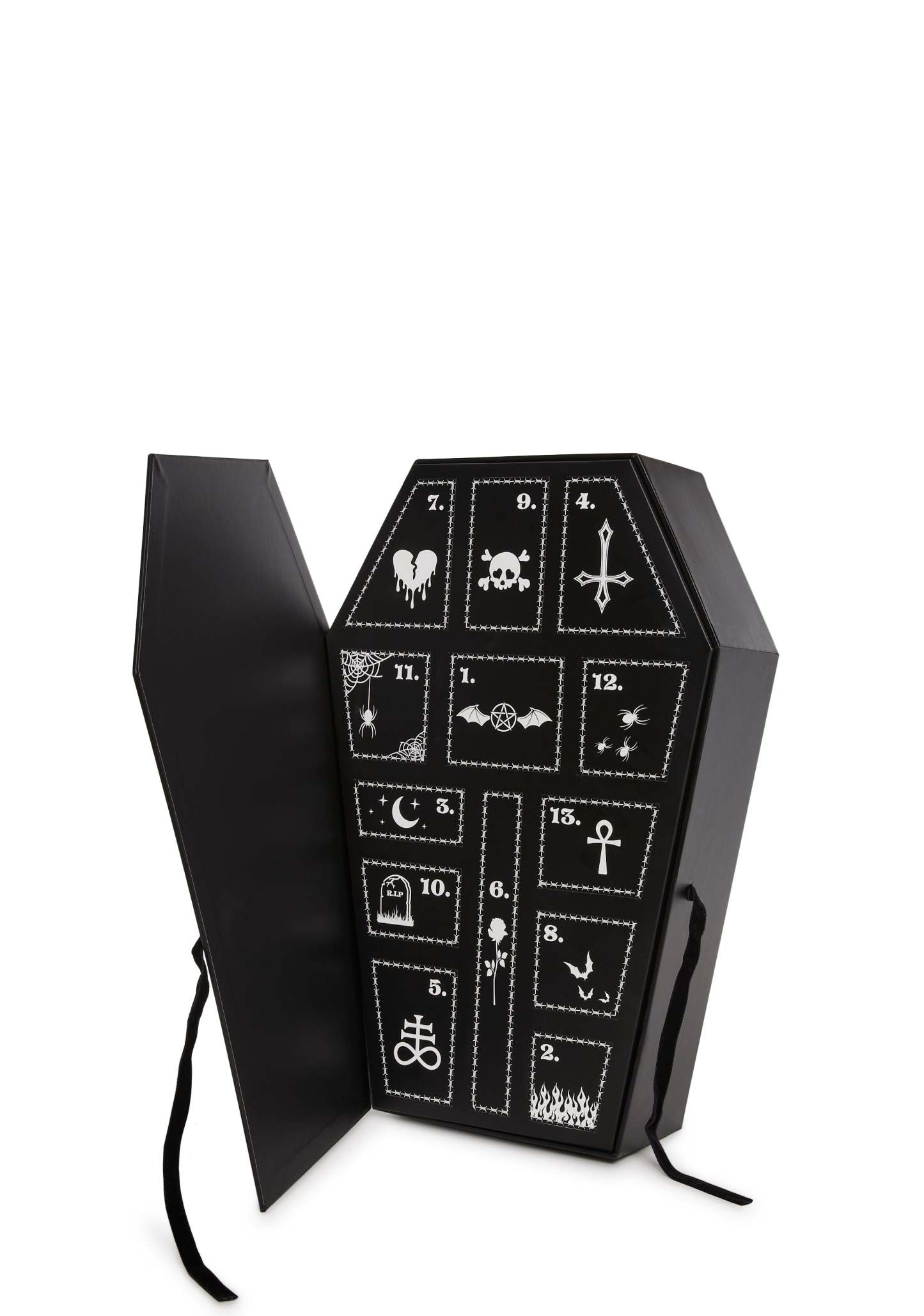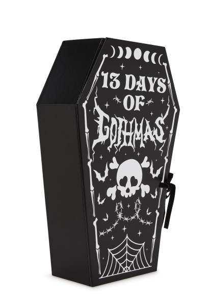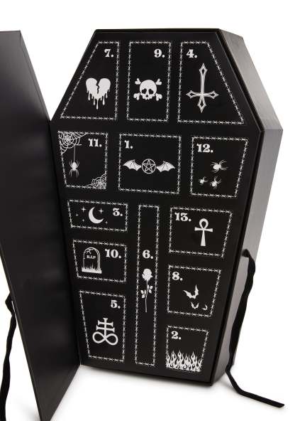 This coffin-shaped advent calendar has 13 doors that reveal a new surprise product every day.