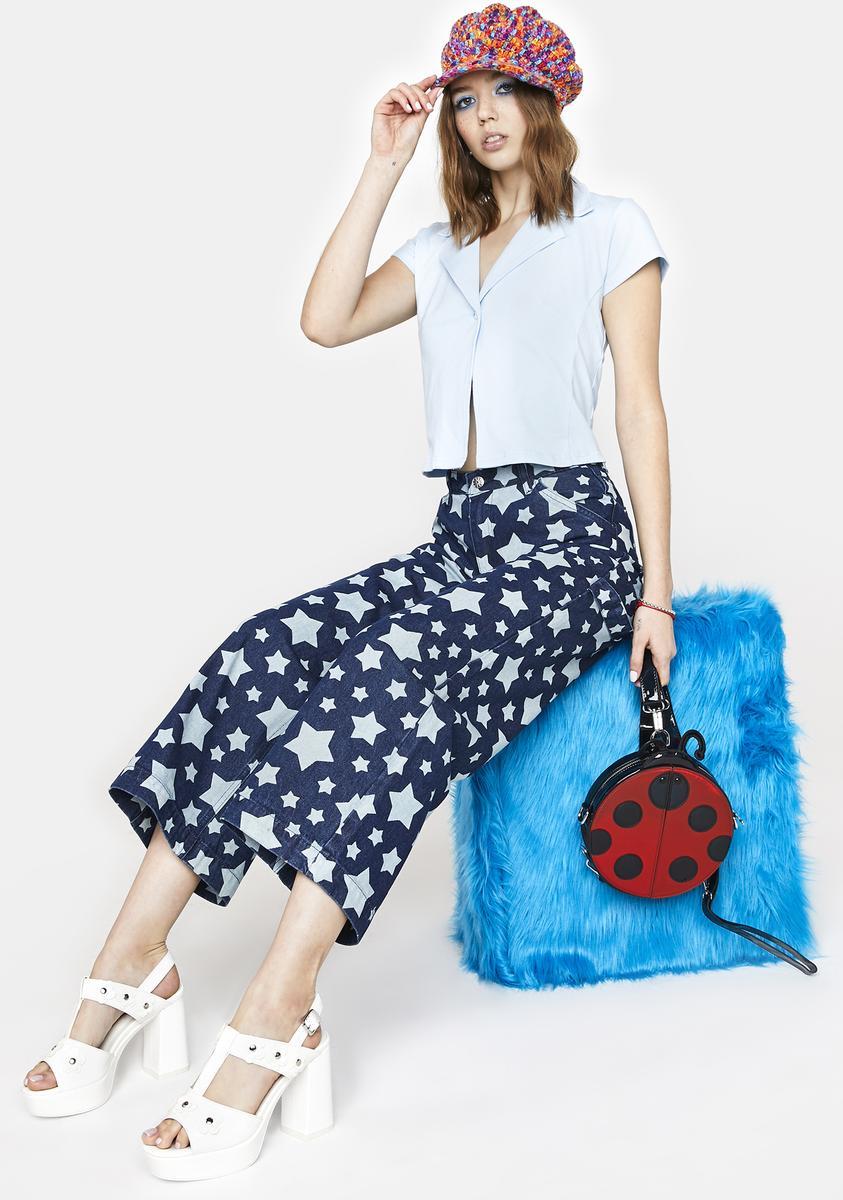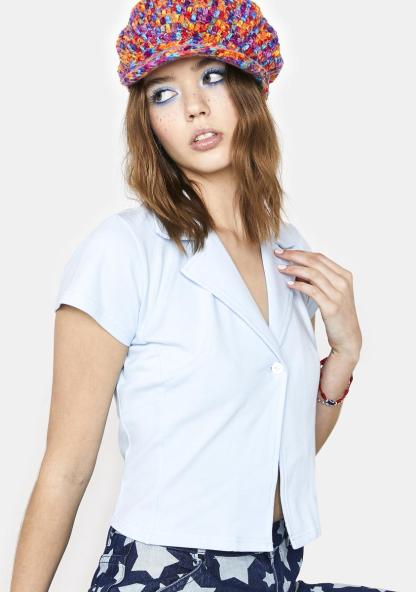 cuz you're moving on to bigger and better. This short sleeve pique shirt has a single button closure on the front, a slightly cropped fit, and a revere collar neckline.