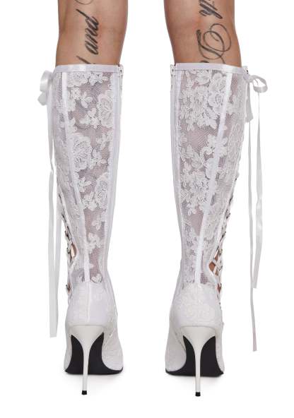 Dream Boulevard Lace Boots - White