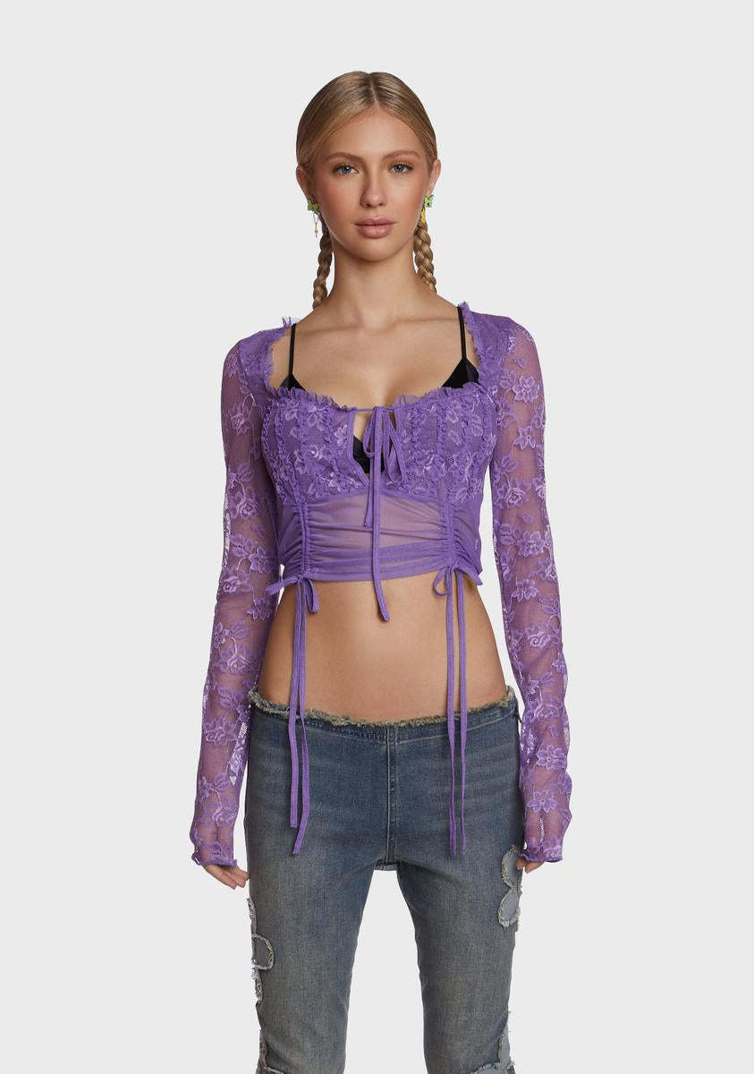 cuz only you can. This top comes in a stretchy mesh construction, with ruching, tie closures, floral lace details, adjustable shoulder straps, and back hook and eye closures.