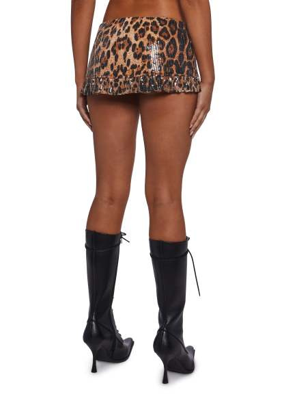 Wow them with this mini skort has a sequined construction, an all over leopard print, and a side zipper closure.Details:Mini skort with a sequined constructionFeatures an all-over leopard printIncludes a side zipper closureStyle with: Pair with over-the-knee boots and a crossbody bag for a casual look, or add sleek heels and a clutch for a chic evening outfit.