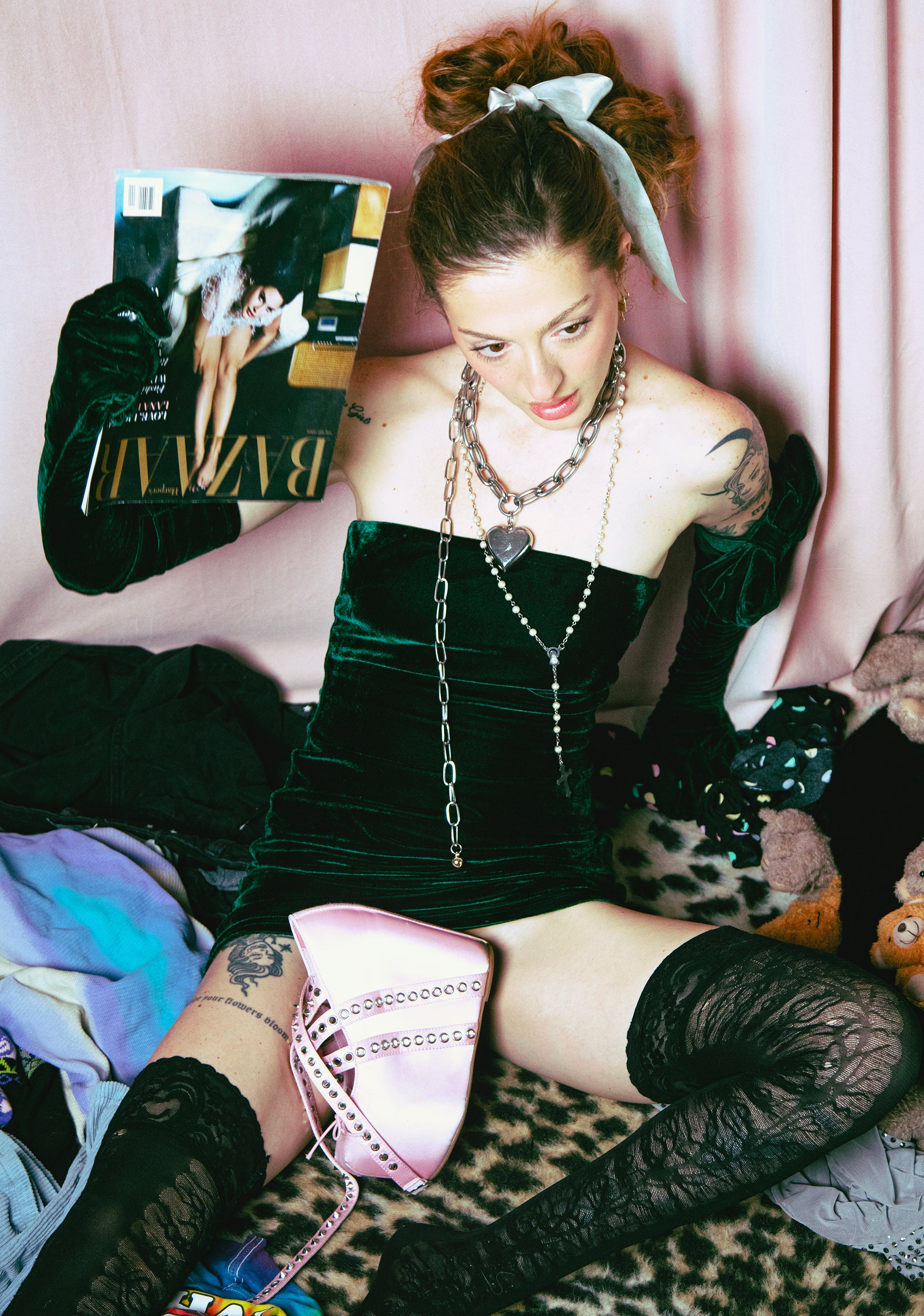 cuz time to celebrate! This strapless mini dress has a stretchy velour construction, a back zipper closure, and matching arm length gloves with a bow trim.