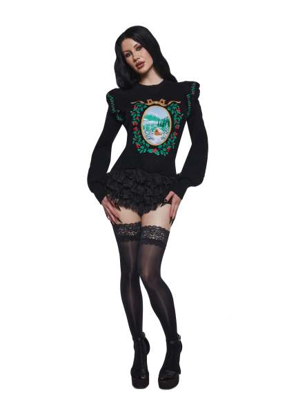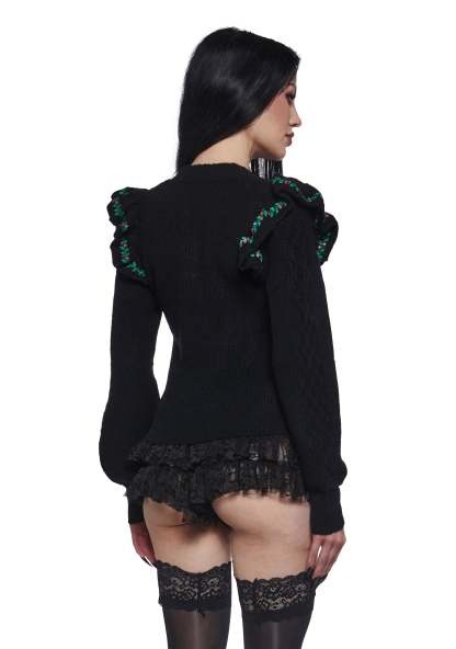cuz who’s ready for some festive cheer?! This sweater has a chunky knit construction, a turtle neckline, long sleeves, and an embroidered design on the front and shoulders.