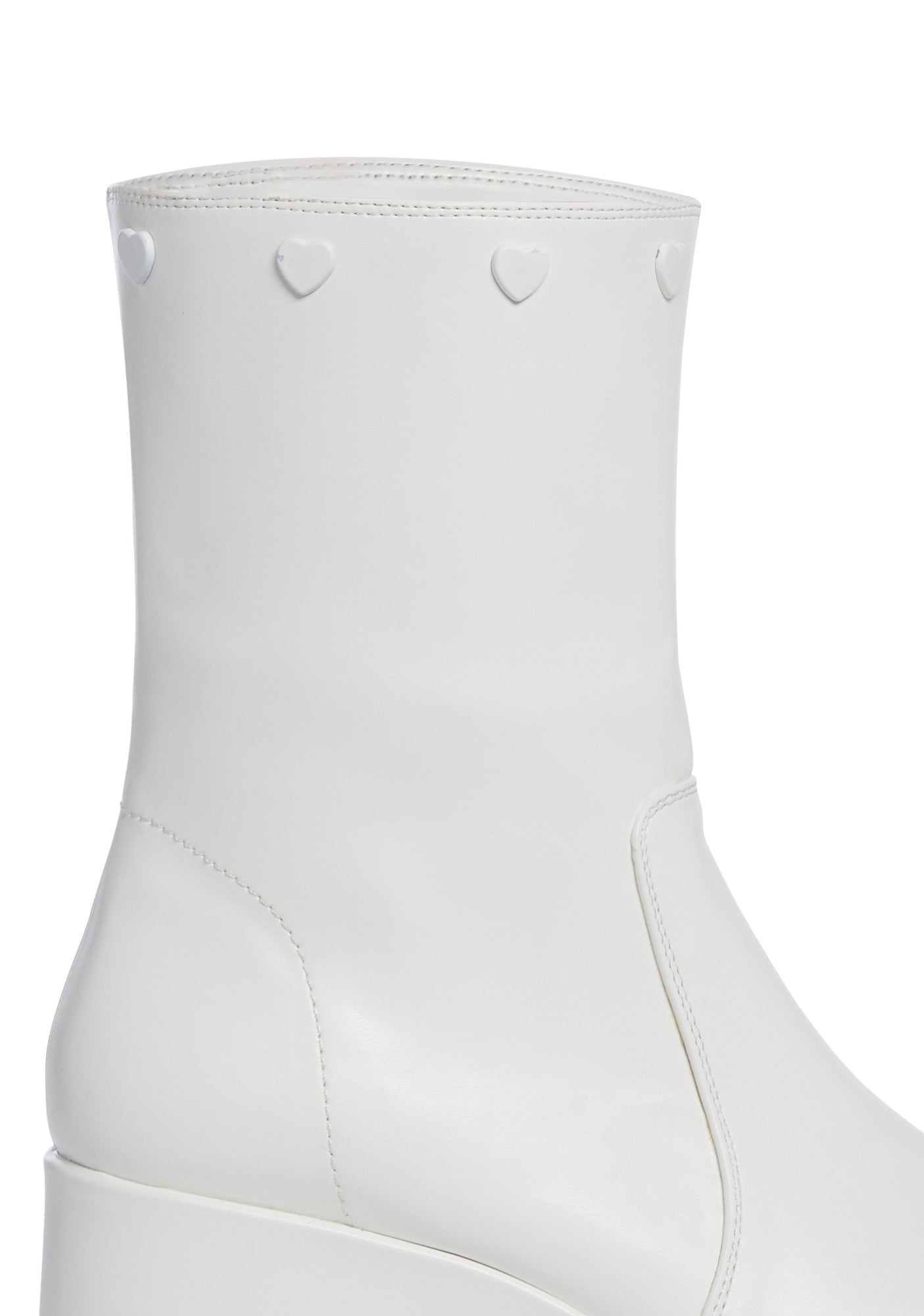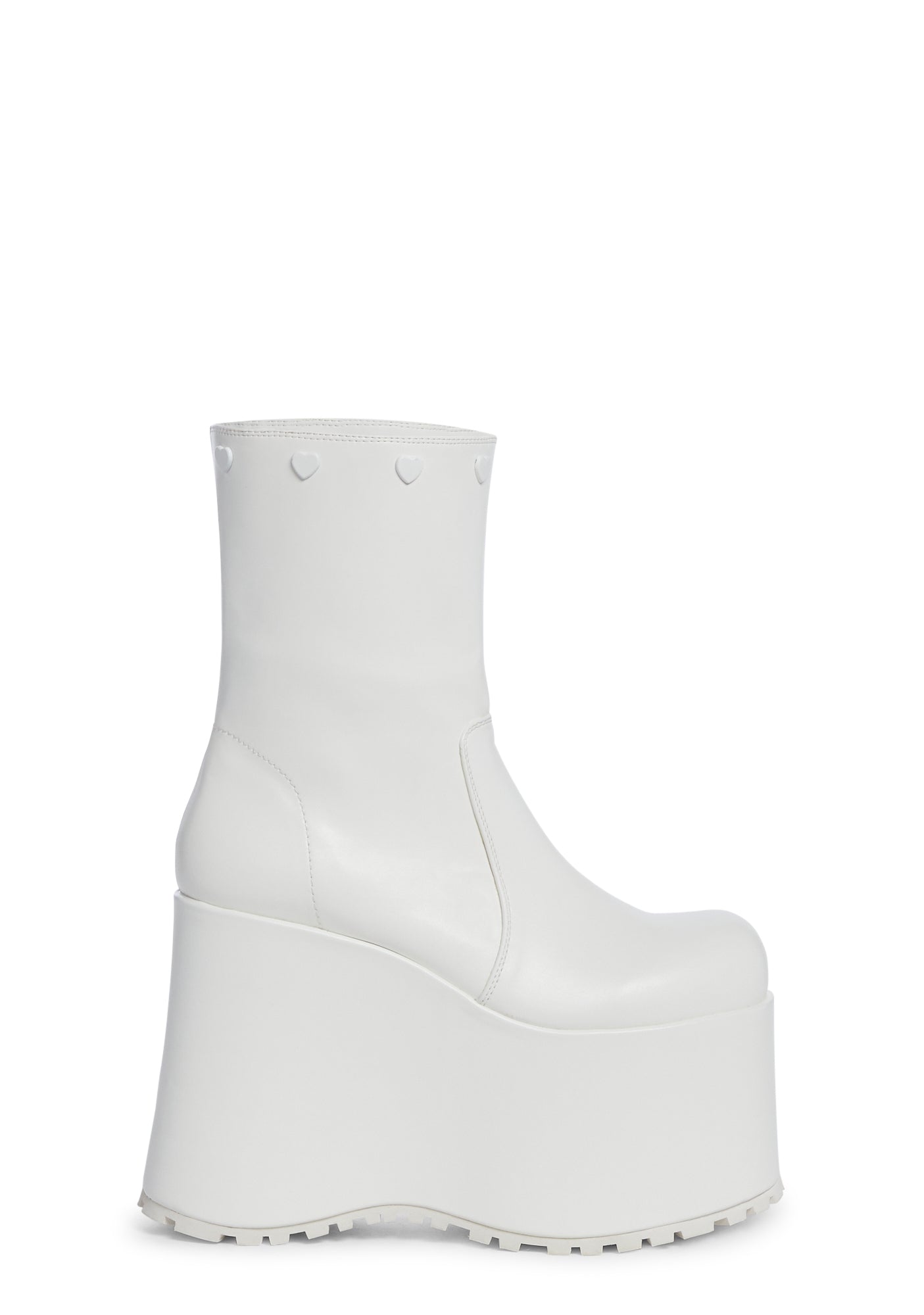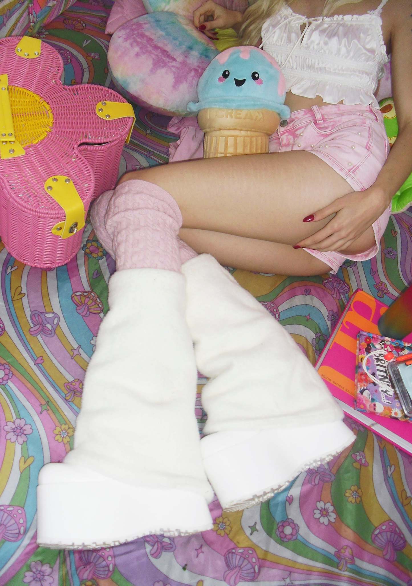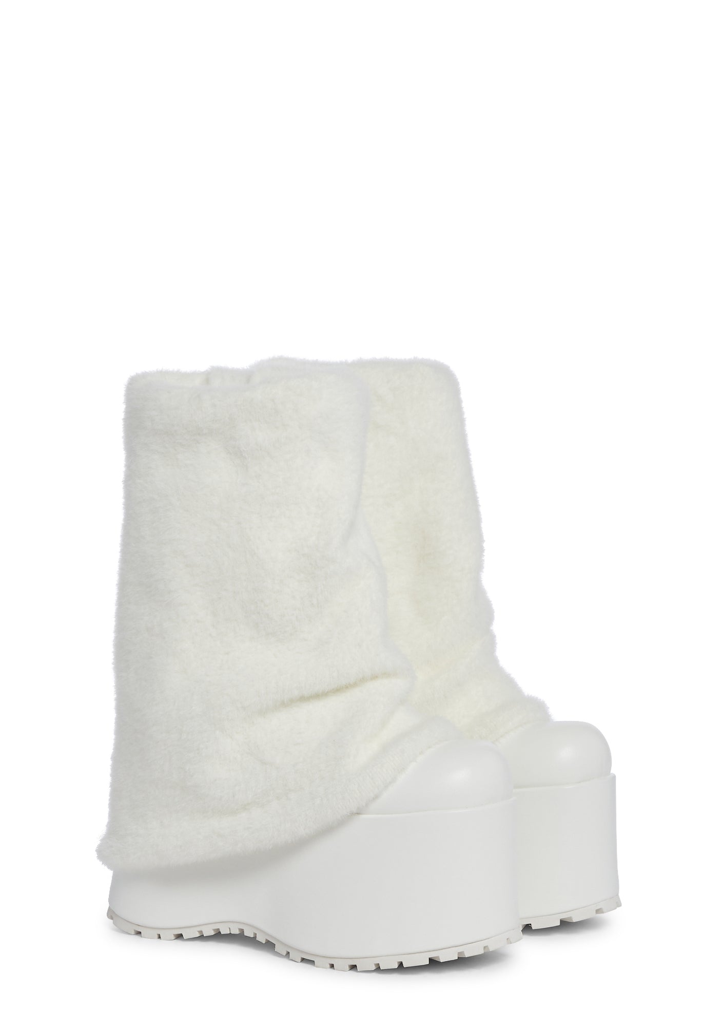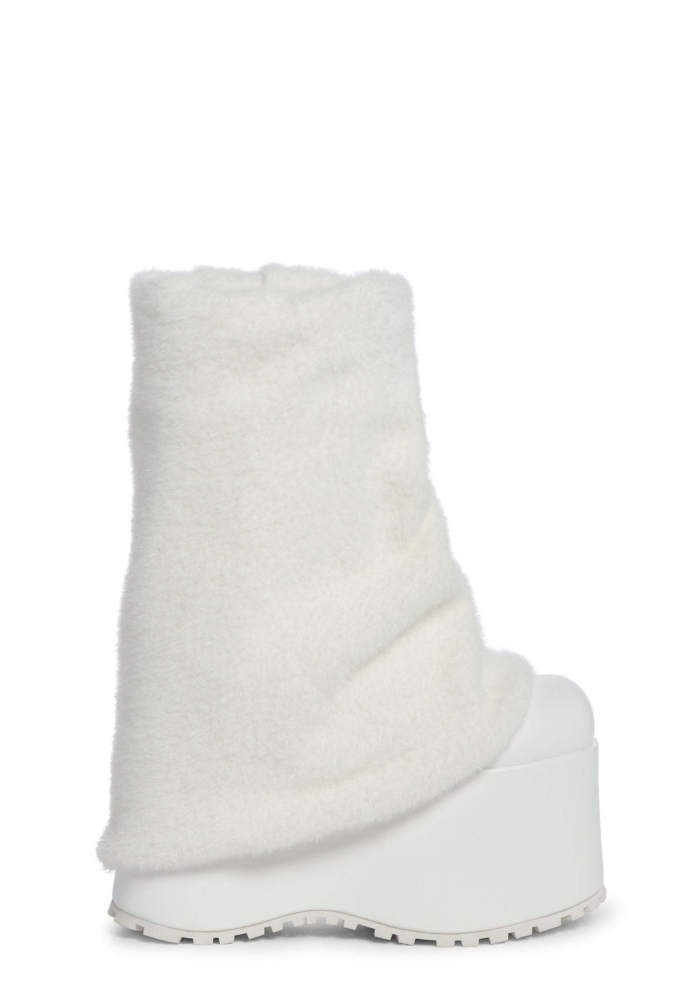 give 'em plushie power! These adorable platform boots have a vegan leather construction, detachable faux fur leg warmers, side zip closures, and rubber treaded outsoles.