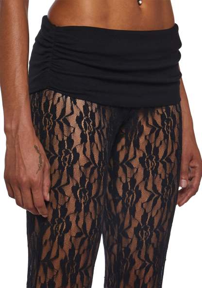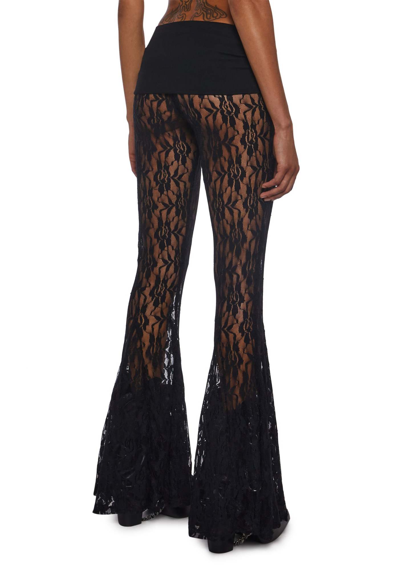Turn up the heat with the Siren Moves Lace Flare Pants, featuring a stretchy foldover jersey waistband and sheer floral lace construction. Designed with flared legs and godet inserts, these pants bring sultry movement and a perfect fit for night-out or festival looks.Details:Sheer floral lace fabricStretch foldover jersey waistbandFlared leg silhouette with godet insertsStyle With:Pair with a lace halter top and platform heels for a head-turning ensemble or a cropped sweater for an effortlessly chic vibe.