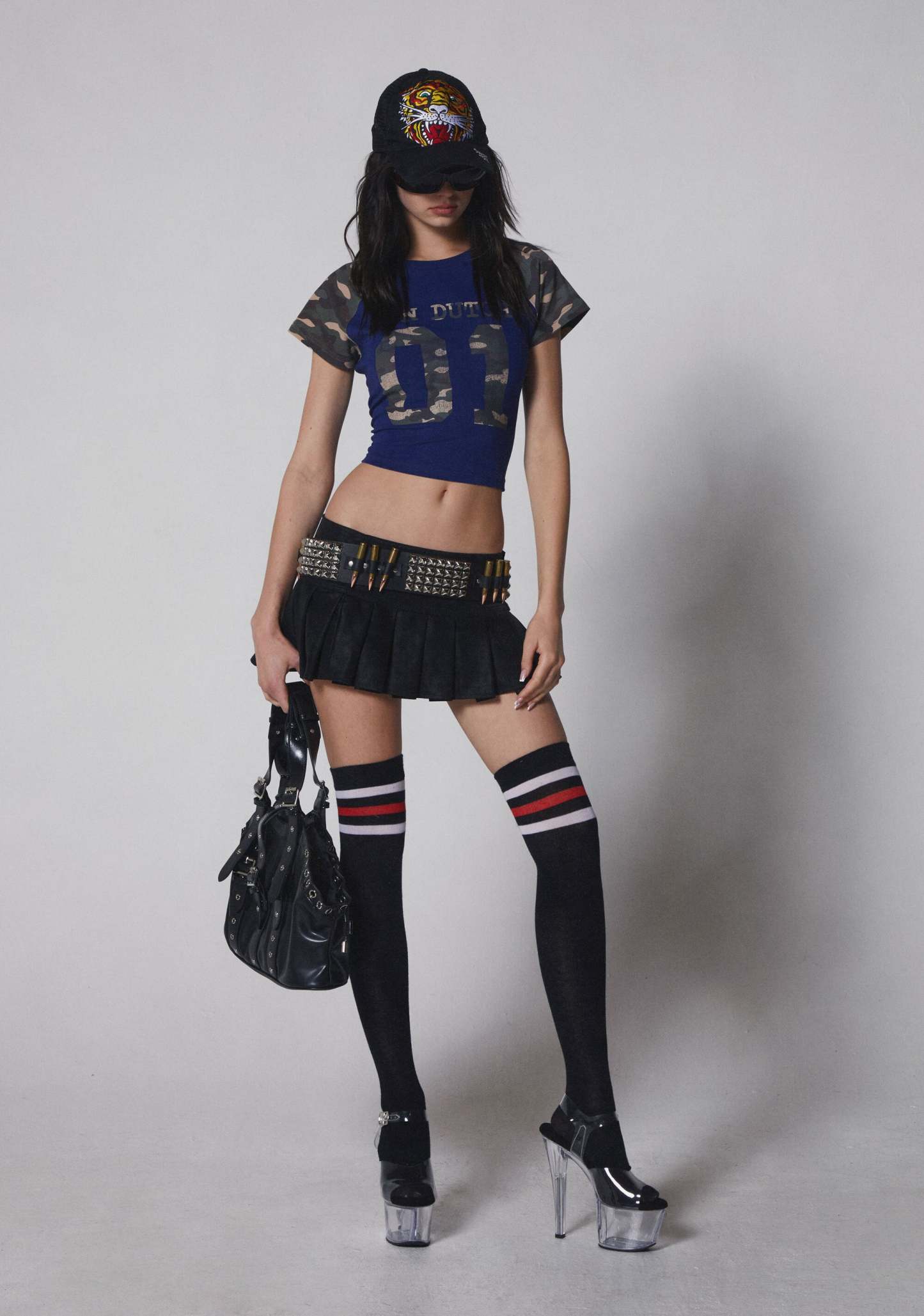 cuz resistance is useless. This pleated micro mini skirt has a vegan leather construction, an adjustable buckle belt, a low rise fit, and a concealed zip closure.
